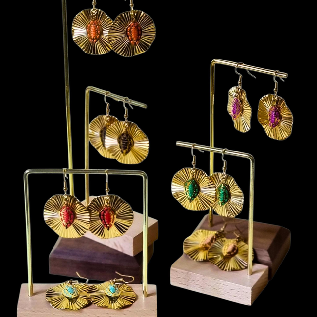 Description : leur surface striée crée des reflets hypnotiques à chaque mouvement. La lumière est au cœur de ce design contemporain.