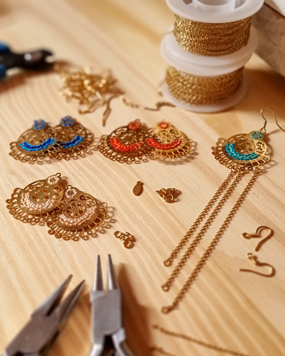 Savoir-faire qui allie geste purement artisanal et design moderne, les bijoux Djenn Emma sont brodés et assemblés à la main, avec patience et minutie dans le soucis du détail dans mon atelier à Saint Pierre, île de la Réunion.